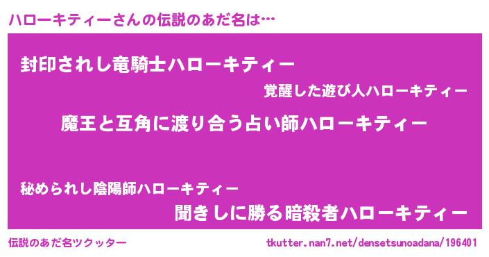 | ヒーロー風カッコイイあだ名 | 『慈愛の使者ハローキティー』 |