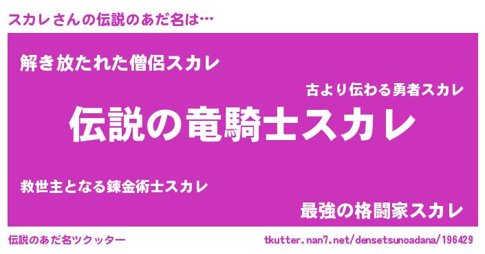 | ヒーロー風カッコイイあだ名 | 『スーパースカレ』『ウルトラ戦士スカレ』 |