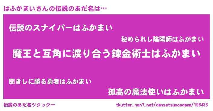 | ヒーロー風カッコイイあだ名 | 『愛の使者はふかまい』『暗黒騎士ハフ』 |