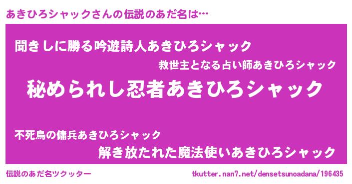 | 意味不明あだ名 | 『あきひろシャックフォーエバー』 |