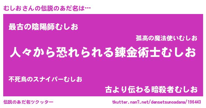 | 意味不明あだ名 | 『エリンギ科むしお属』『永久保存むしお』 |