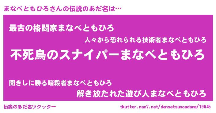 | 肩書あだ名 | 『まなべともひろ御曹司』 |