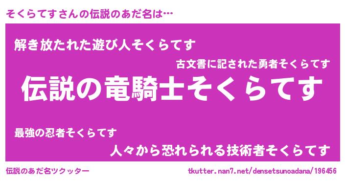 | 意味不明あだ名 | 『住所不定無職そくらてす(8歳)』 |