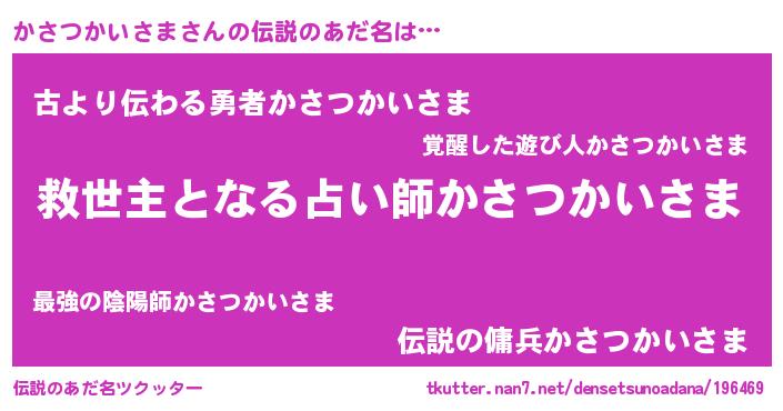 | 意味不明あだ名 | 『住所不定無職かさつかいさま(56歳)』 |