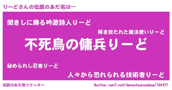 | ヘコむあだ名 | 『りーふぇ~』『りーど(遠い目)』 |
