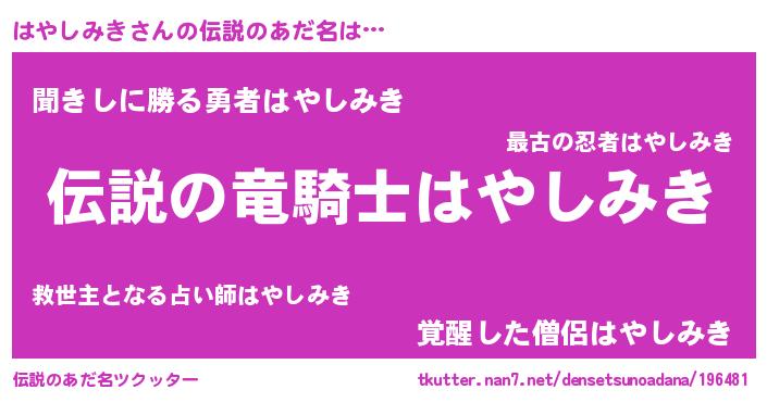 | 意味不明あだ名 | 『自称はやしみき』『ペロリンはやしみき』 |