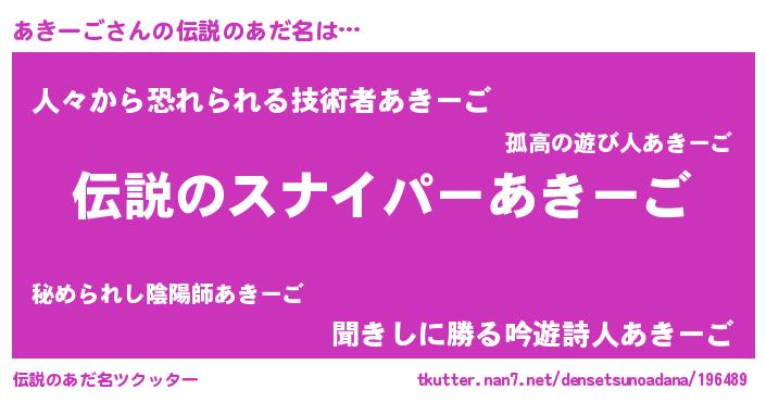 | ヘコむあだ名 | 『あきっふぃ~』『あきーご(小並感)』 |