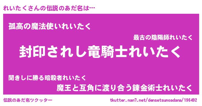| 女子向けラノベタイトル風あだ名 | 『闇のれいたく』『れいたくは平凡を望む』 |