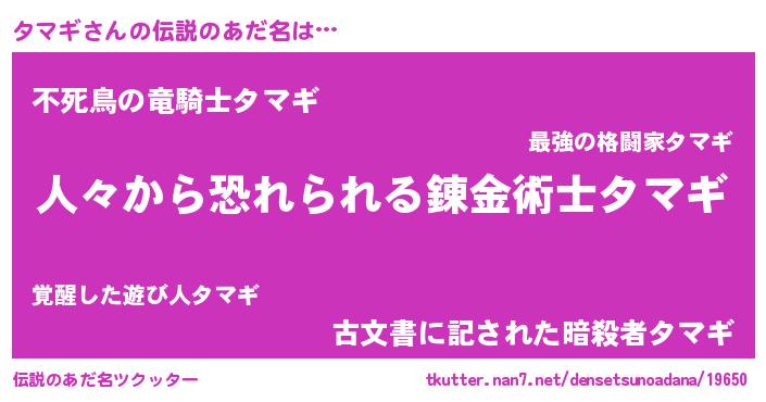 | ヒーロー風カッコイイあだ名 | 『正義の使者タマギ』『スーパータマギ』 |
