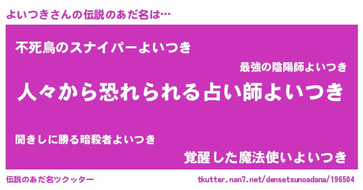 | 欧米人風あだ名 | 『ダニエルよいつき』『マイケルよいつき』 |