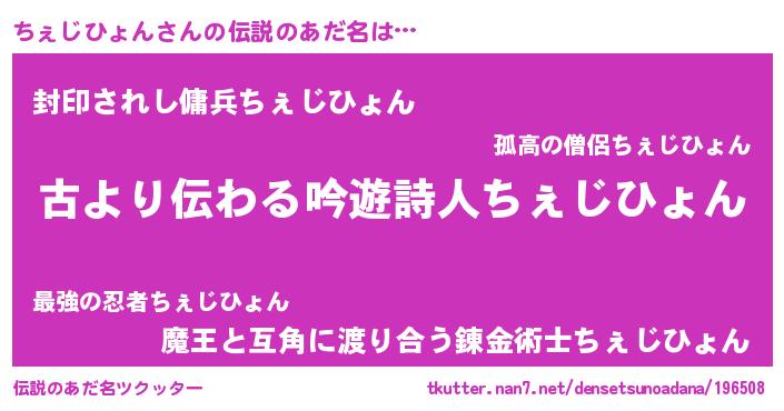 | 意味不明あだ名 | 『自称ちぇじひょん』 |