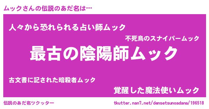 | ヒーロー風カッコイイあだ名 | 『ウルトラムックマン』『天弓騎士ムッ』 |