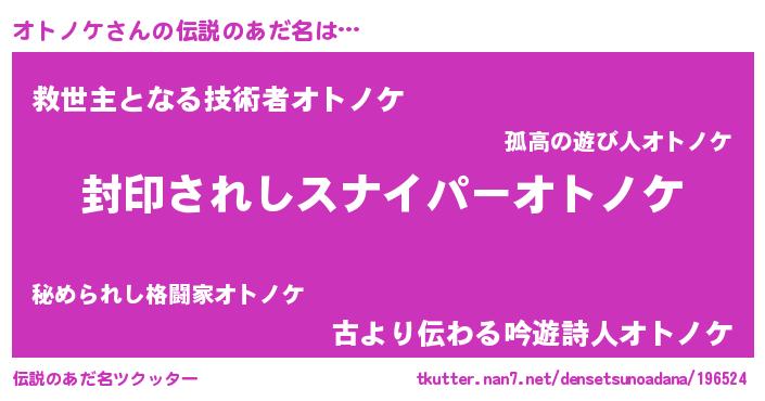 | 意味不明あだ名 | 『ペロリンオトノケ』『永久保存オトノケ』 |