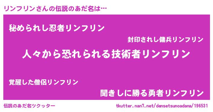 | 男性向けラノベタイトル風あだ名 | 『リンフリンスレイヤー』 |