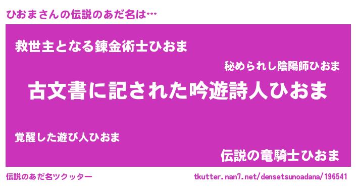 | 意味不明あだ名 | 『自称ひおま』『永久保存ひおま』 |