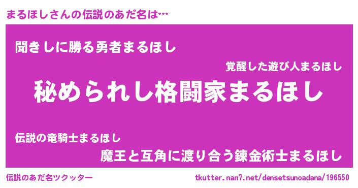 | 意味不明あだ名 | 『まるほしフォーエバー』『自称まるほし』 |