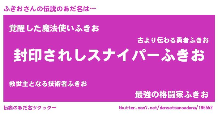 | 男性向けラノベタイトル風あだ名 | 『フキオアートオンライン』 |