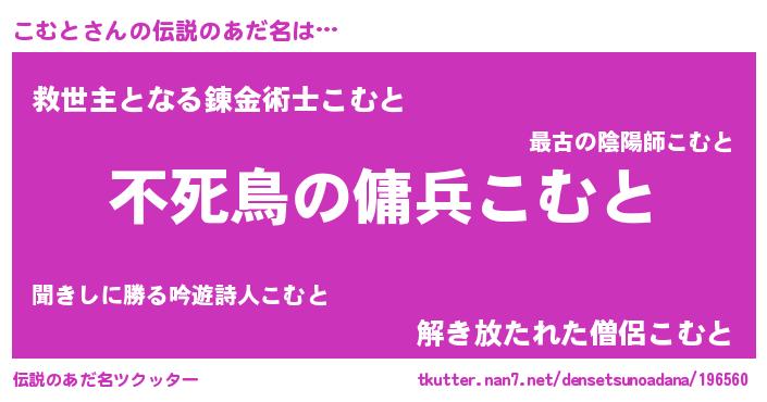 | 女子向けラノベタイトル風あだ名 | 『こむと姫と円卓の騎士』 |