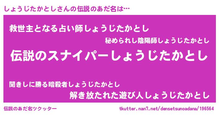 | 意味不明あだ名 | 『住所不定無職しょうじたかとし(81歳)』 |