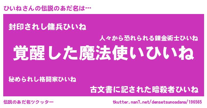 | ヒーロー風カッコイイあだ名 | 『天弓騎士ヒイ』『究極戦士ヒイネ』 |