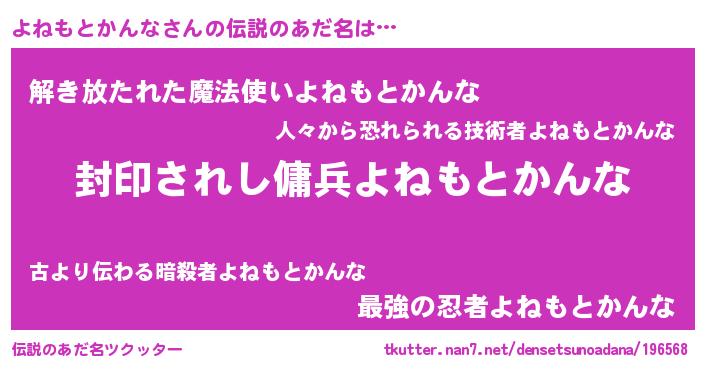 | 胡散臭い通販商品みたいなあだ名 | 『億万長者になれる水晶球…その名も「よねもとかんな」』 |