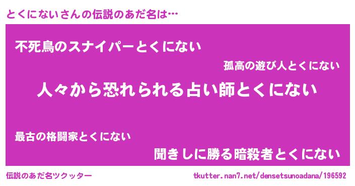 | ヒーロー風カッコイイあだ名 | 『正義の使者とくにない』『炎刃騎士トク』 |