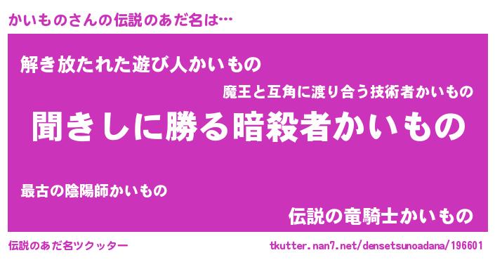 | 意味不明あだ名 | 『自称かいもの』『永久保存かいもの』 |