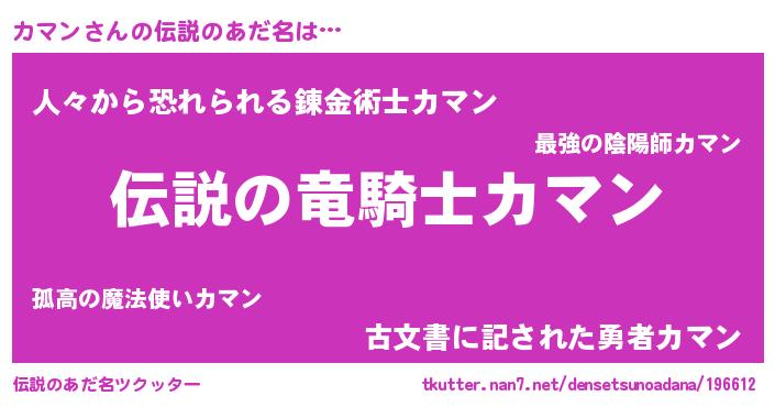 | 男性向けラノベタイトル風あだ名 | 『魔弾の王とカマン』『カマンの憂鬱』 |