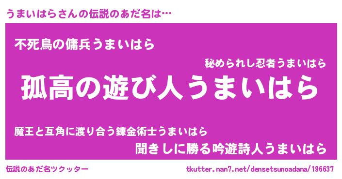 | 男性向けラノベタイトル風あだ名 | 『ウマイハラスレイヤー』 |