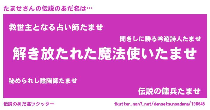 | 女子向けラノベタイトル風あだ名 | 『たませの卵を拾いまして』 |
