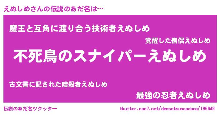 | ヒーロー風カッコイイあだ名 | 『スーパーエヌシメ』『仮面エヌダー』 |