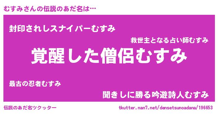 | 意味不明あだ名 | 『住所不定無職むすみ(56歳)』 |