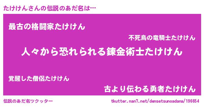 | ヒーロー風カッコイイあだ名 | 『友情の使者たけけん』『仮面タケダー』 |