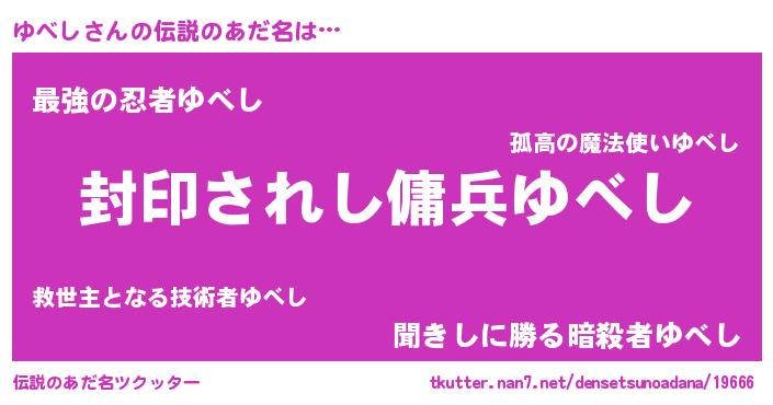 | ヒーロー風カッコイイあだ名 | 『スーパーユベシ』『ウルトラゆべしマン』 |