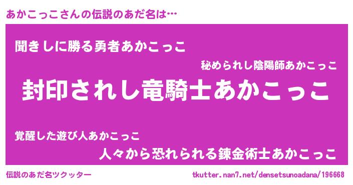 | 意味不明あだ名 | 『ペロリンあかこっこ』『自称あかこっこ』 |