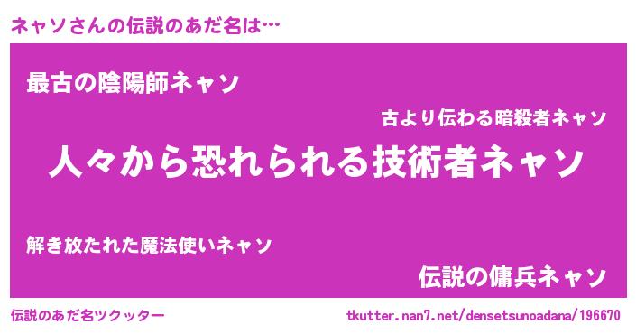 | ヒーロー風カッコイイあだ名 | 『正義の使者ネャソ』『仮面ネャダー』 |