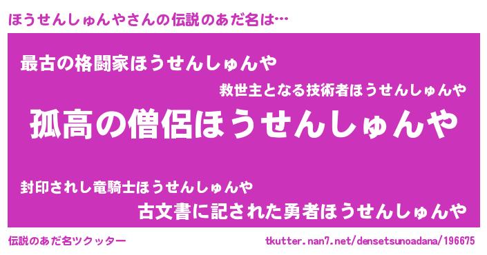 | ヒーロー風カッコイイあだ名 | 『ウルトラ戦士ホウセンシュンヤ』 |