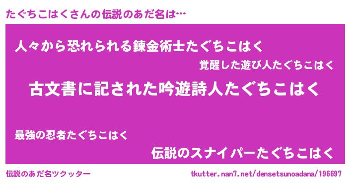 | ヘコむあだ名 | 『たぐちこはく(笑)』『たぐもー』 |