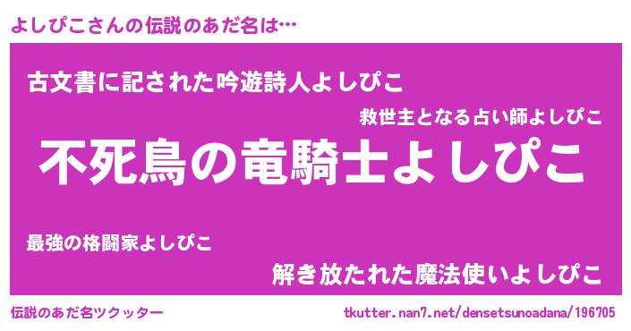 | 意味不明あだ名 | 『住所不定無職よしぴこ(2歳)』 |