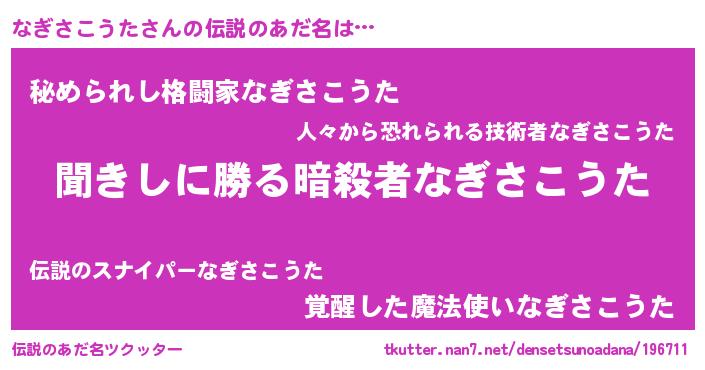 | 意味不明あだ名 | 『永久保存なぎさこうた』 |