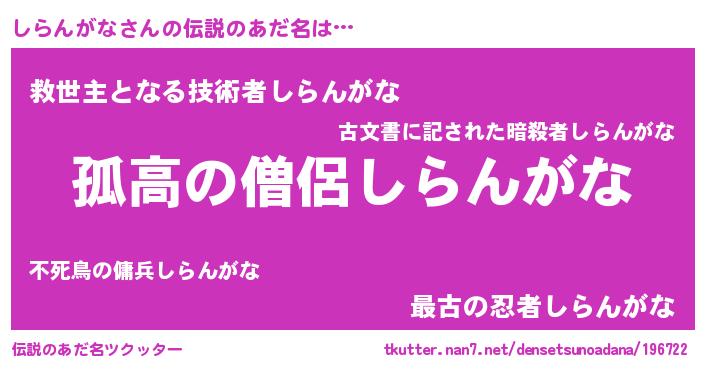 | 女子向けラノベタイトル風あだ名 | 『しらんがなは平凡を望む』 |