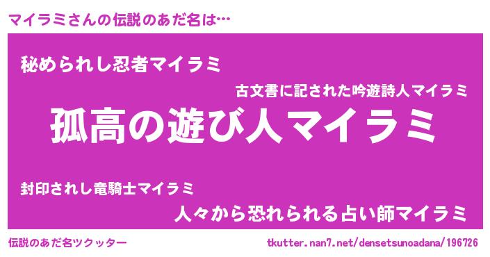 | ポケモン風あだ名 | 『マイキング』『ヒマイラミ』 |