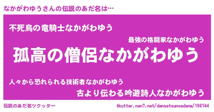 | 女子向けラノベタイトル風あだ名 | 『なかがわゆうは平凡を望む』 |