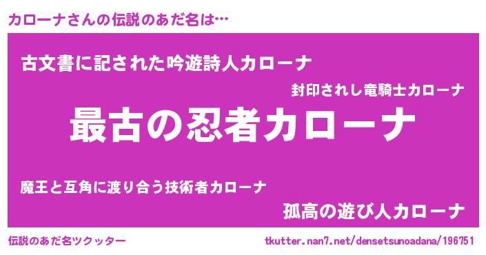 | 意味不明あだ名 | 『自称カローナ』『カローナフォーエバー』 |