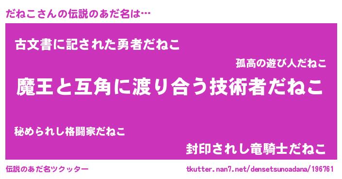 | ヒーロー風カッコイイあだ名 | 『慈愛の使者だねこ』『ネオダネコ』 |