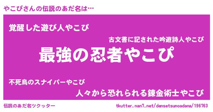 | ファンタジー風あだ名 | 『ゼヤコトゥ』『エターナルヤコピー』 |
