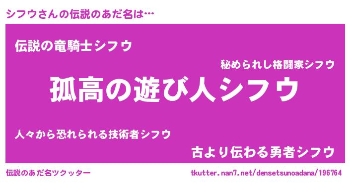 | 意味不明あだ名 | 『とにかく怪しいシフウ』『自称シフウ』 |