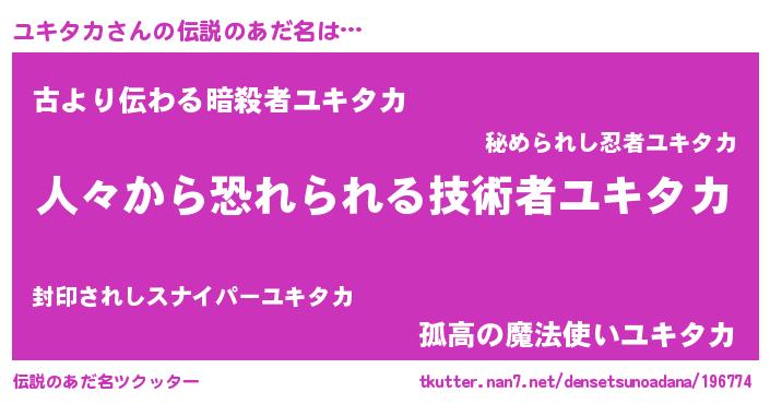 | ヘコむあだ名 | 『ユキタカ(小並感)』『ユキっ子』 |
