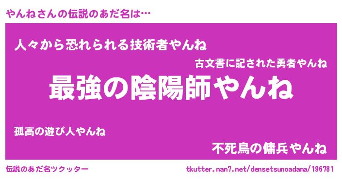 | ファンタジー風あだ名 | 『エターナルヤンネー』『クインヤット』 |