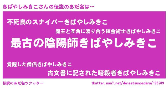 | 欧米人風あだ名 | 『きばやしみきこクリステル』 |